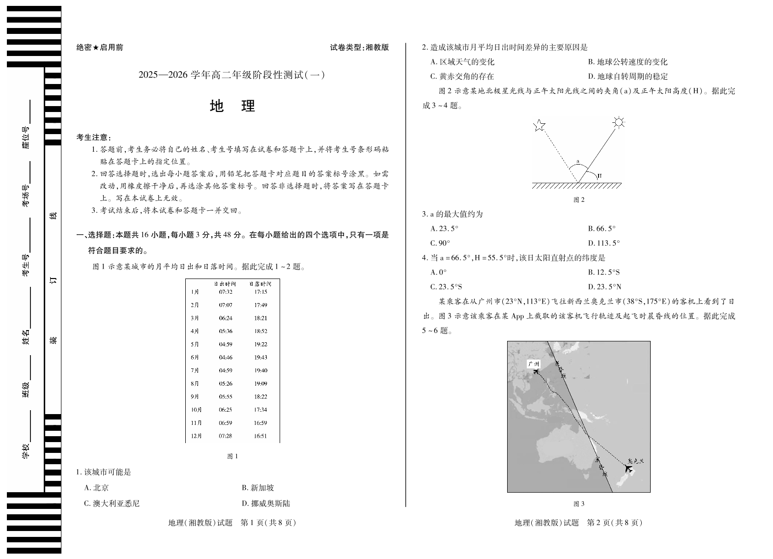 【地理湘教】天一大联考·2025-2026学年高二年级阶段性测试(一).pdf