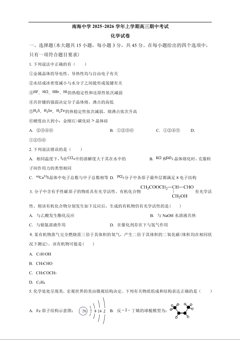 南海中学2025-2026学年上学期高三期中考试 化学.docx