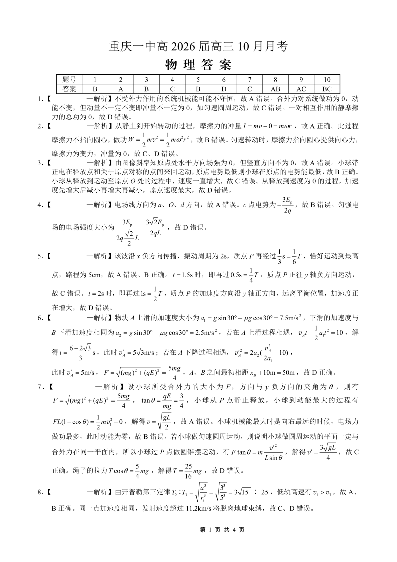 重庆一中高2026届高三10月月考 物理答案.pdf