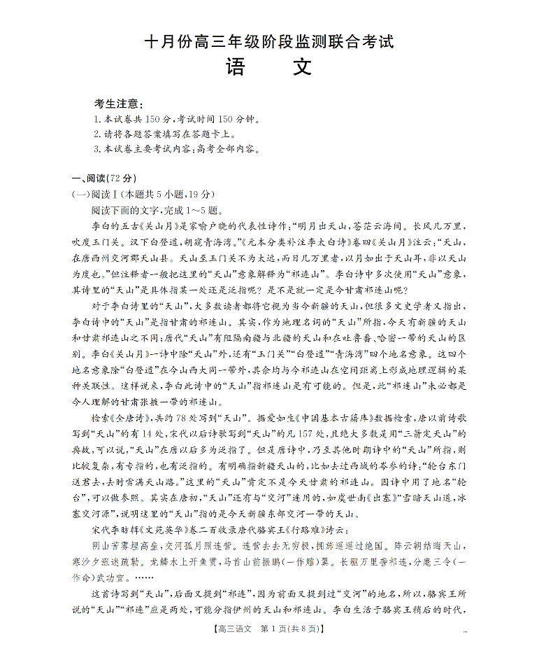 湖北省2025-2026学年十月份高三年级阶段监测联合考试 语文.pdf