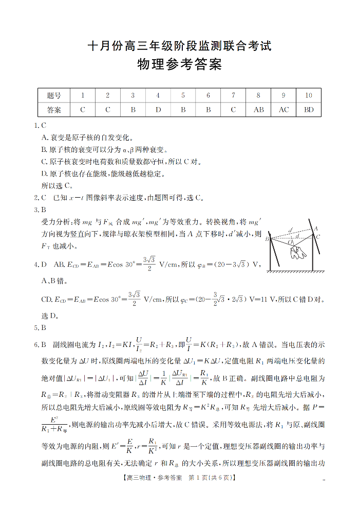 湖北省2025-2026学年十月份高三年级阶段监测联合考试 物理答案.pdf