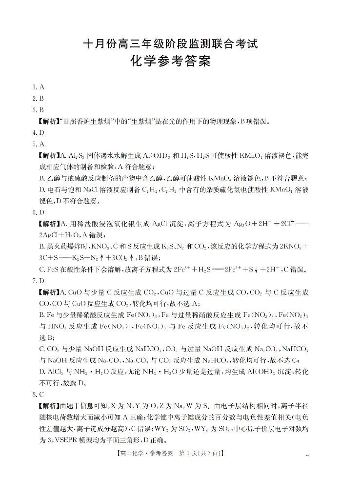 湖北省2025-2026学年十月份高三年级阶段监测联合考试 化学答案.pdf
