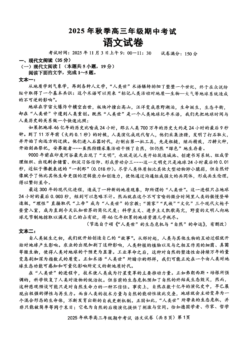 鄂东南2025年秋季高三年级期中考试 语文.pdf
