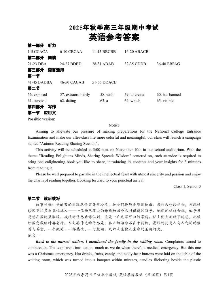 鄂东南2025年秋季高三年级期中考试 英语答案.pdf