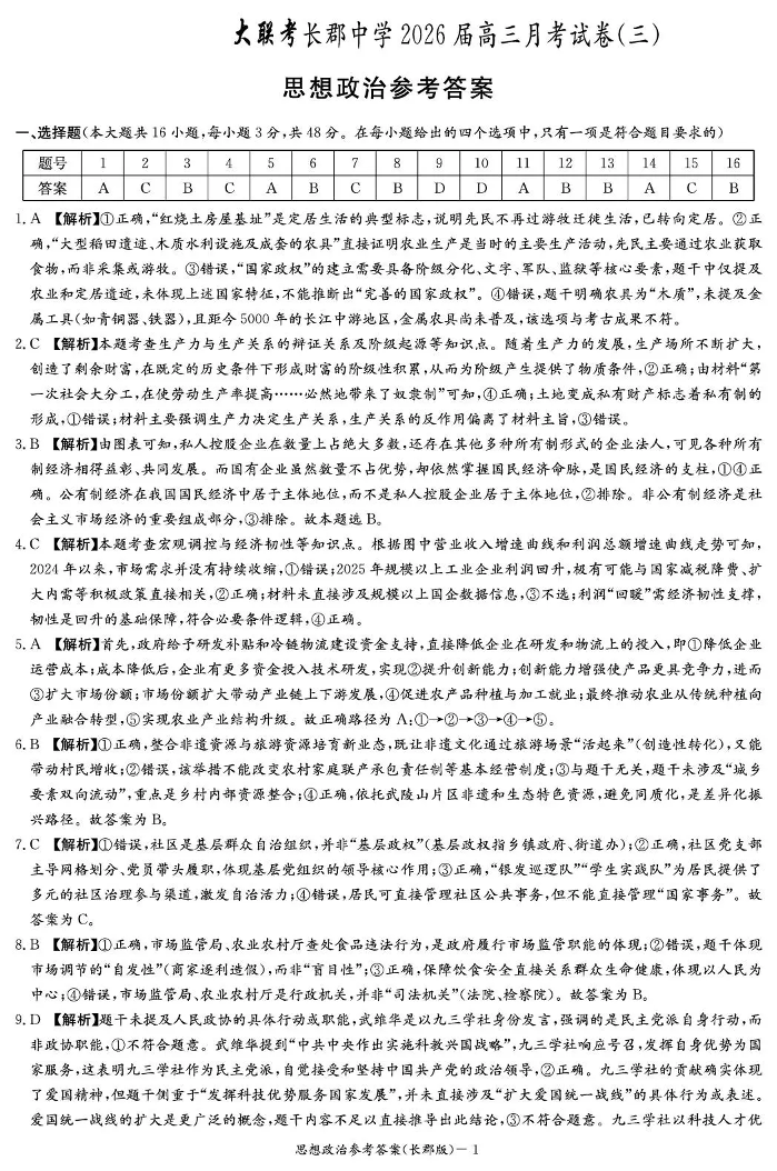 长郡中学2026届高三月考试卷(三)政治答案.pdf