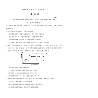 长郡中学2026届高三月考试卷(三)生物.pdf
