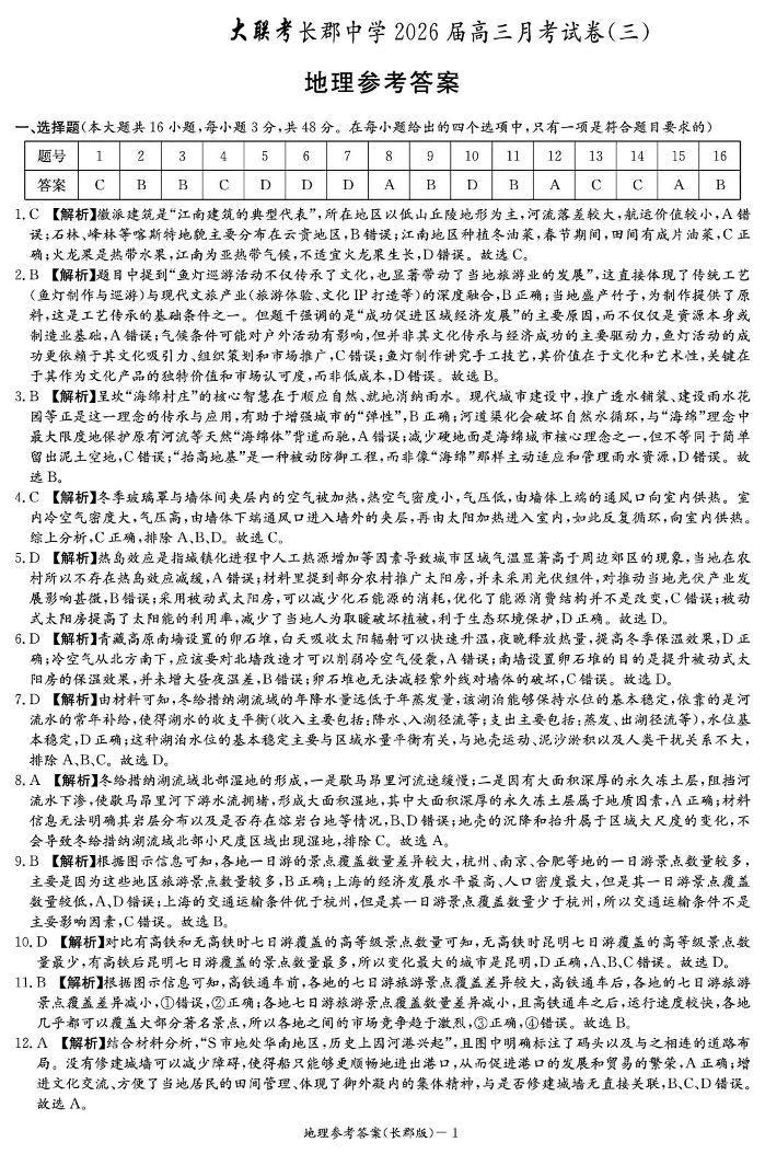 长郡中学2026届高三月考试卷(三)地理答案.pdf