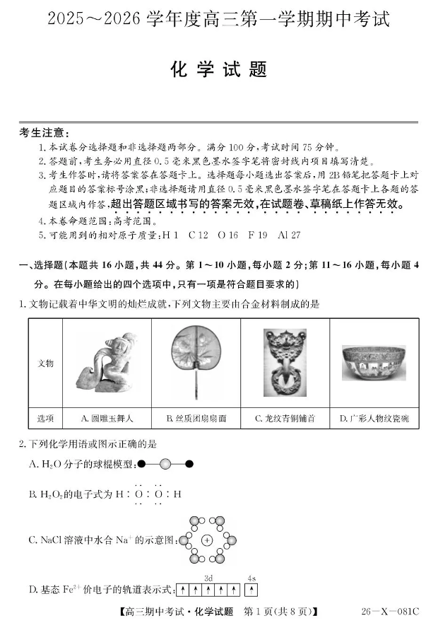 2025~2026学年度高三第一学期期中考试化学.pdf