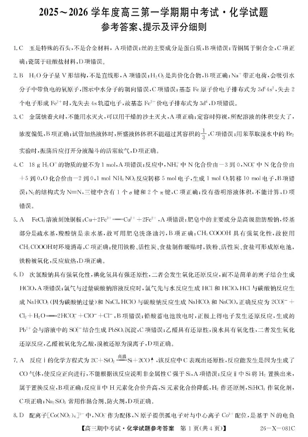 2025~2026学年度高三第一学期期中考试化学答案.pdf