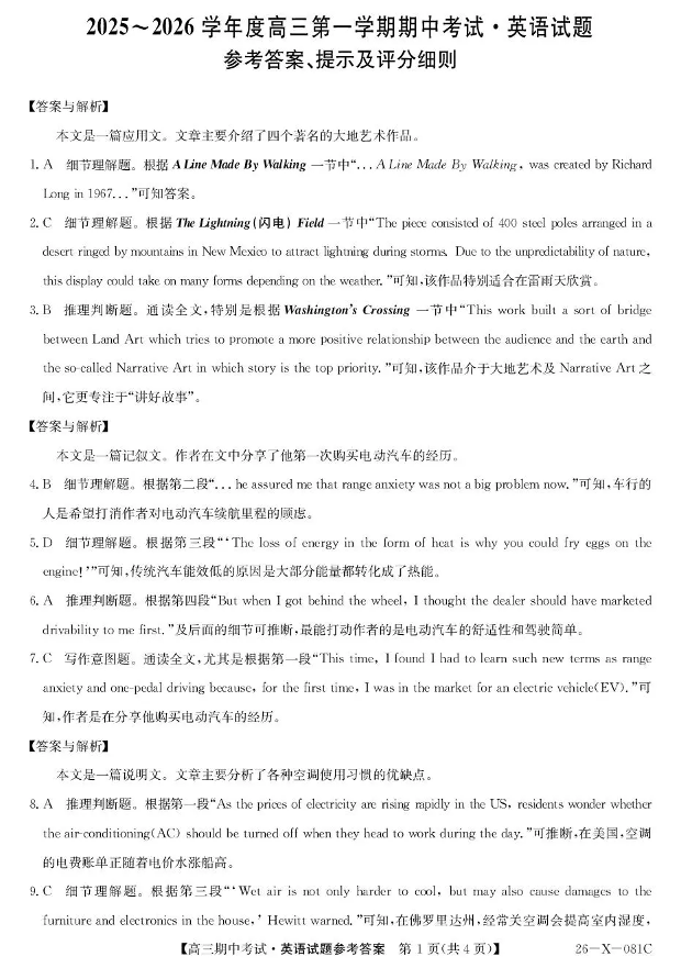 2025~2026学年度高三第一学期期中考试英语答案.pdf