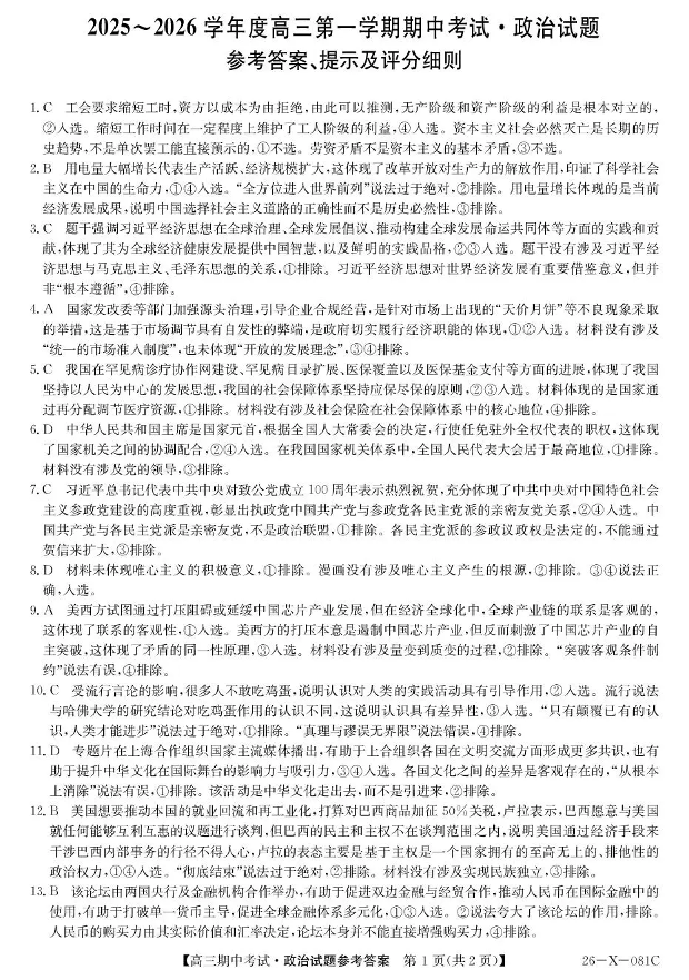2025~2026学年度高三第一学期期中考试政治答案.pdf