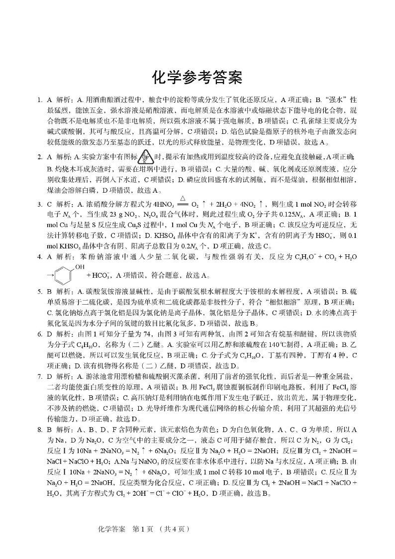 保定市2026届高三上学期期中考试化学答案.pdf