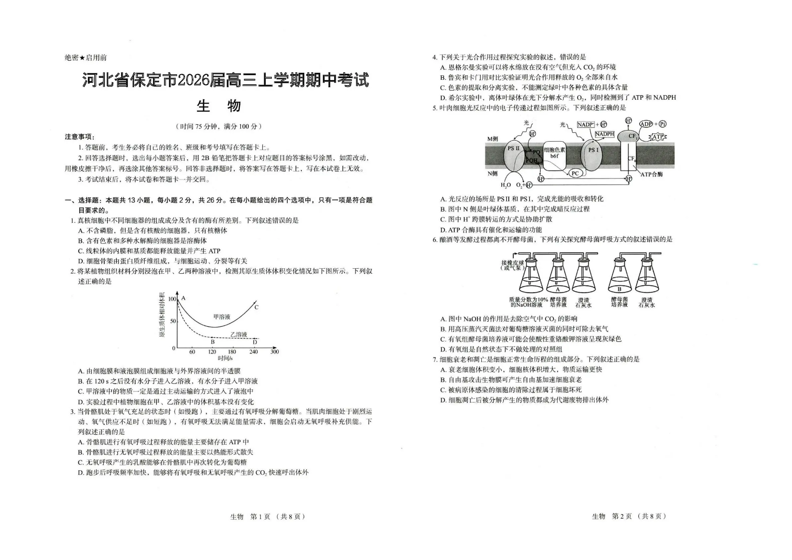 保定市2026届高三上学期期中考试生物.pdf