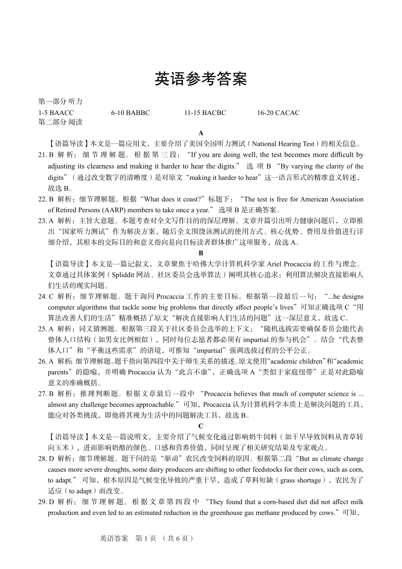 保定市2026届高三上学期期中考试英语答案.pdf