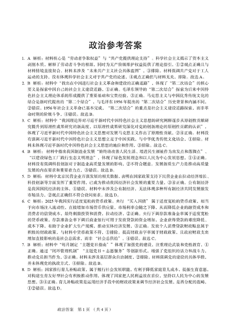 保定市2026届高三上学期期中考试政治答案.pdf