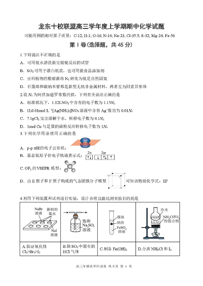 龙东十校联盟2026届高三上学期期中考试化学+答案.pdf