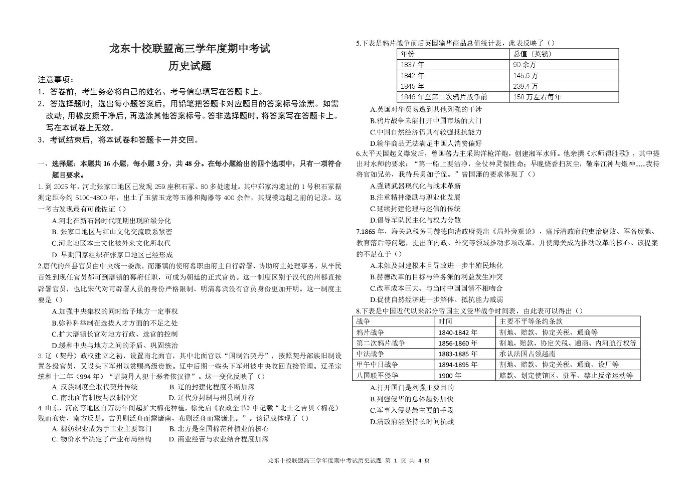 龙东十校联盟2026届高三上学期期中考试历史+答案.pdf