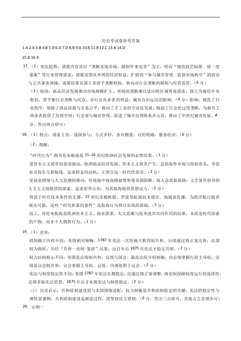 辽宁省2026届高三上学期11月联考(26-103C)历史答案.docx