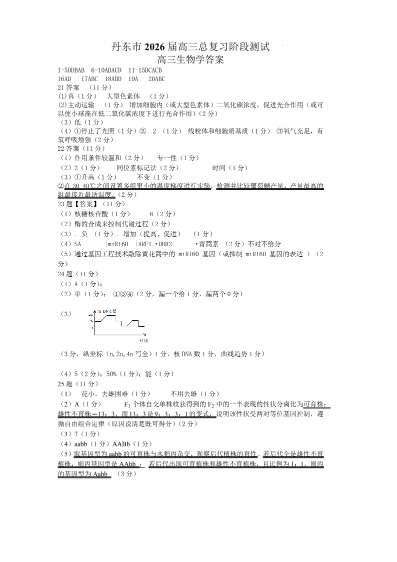 丹东市2026届高三总复习阶段测试生物答案.pdf