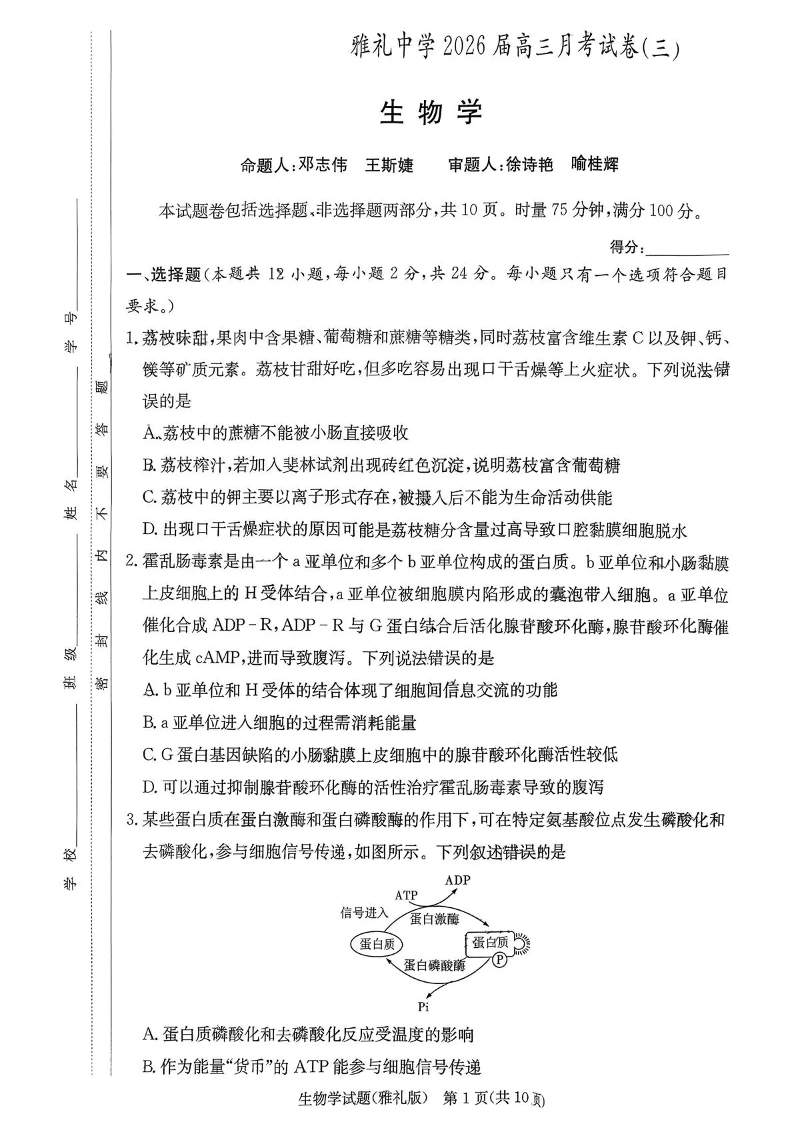 雅礼中学2026届高三月考试卷(三)生物.pdf