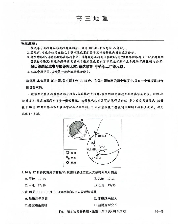 九师联盟2026届高三上学期11月联考地理(H-G).pdf