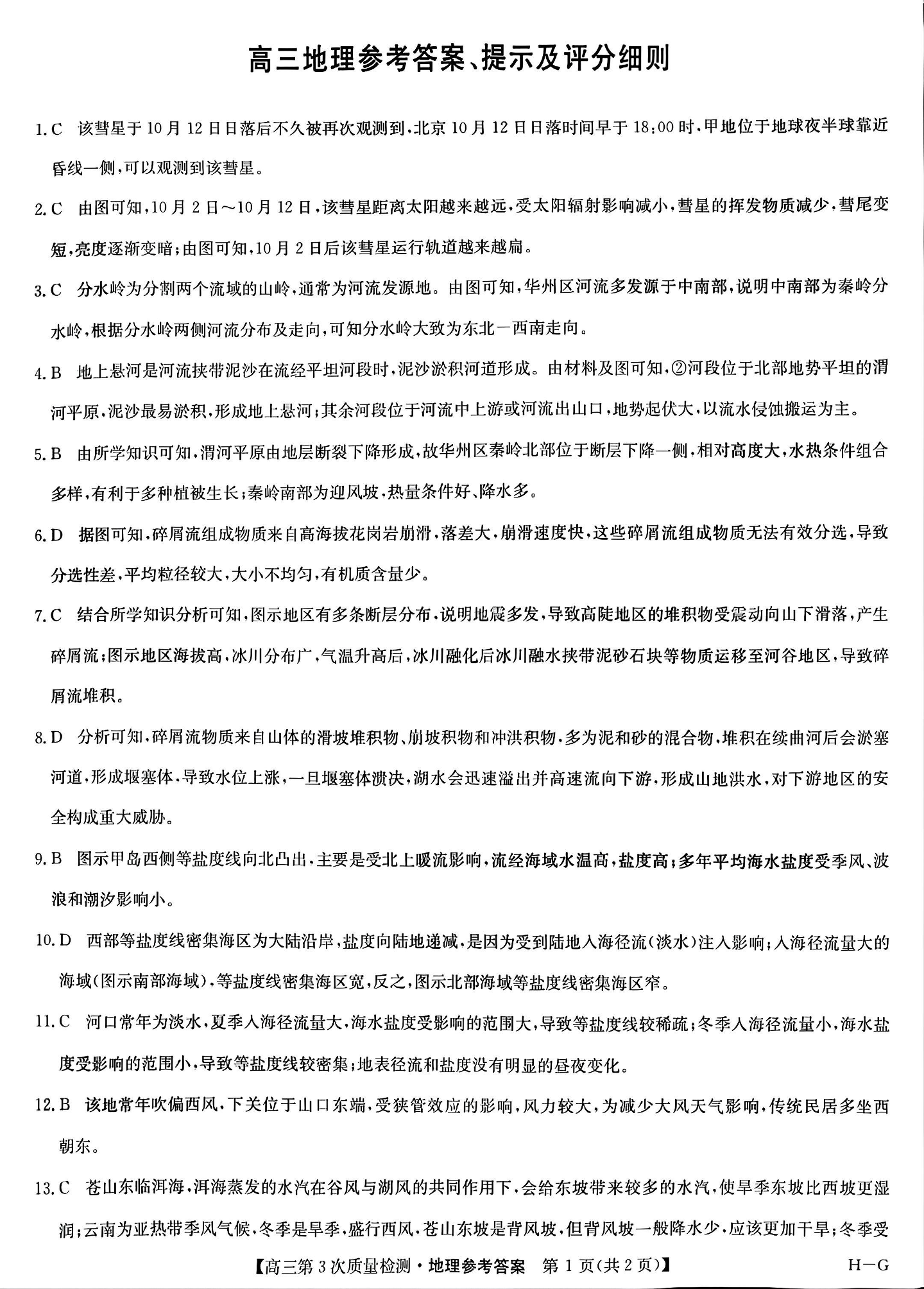 九师联盟2026届高三上学期11月联考地理(H-G)答案.pdf