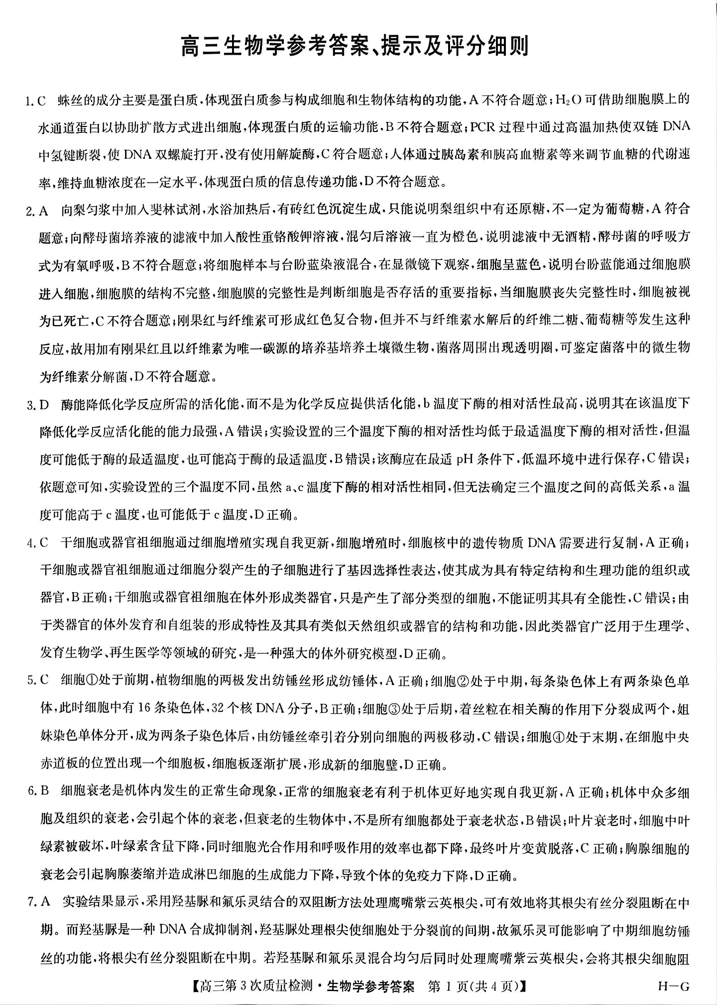 九师联盟2026届高三上学期11月联考生物(H-G)答案.pdf