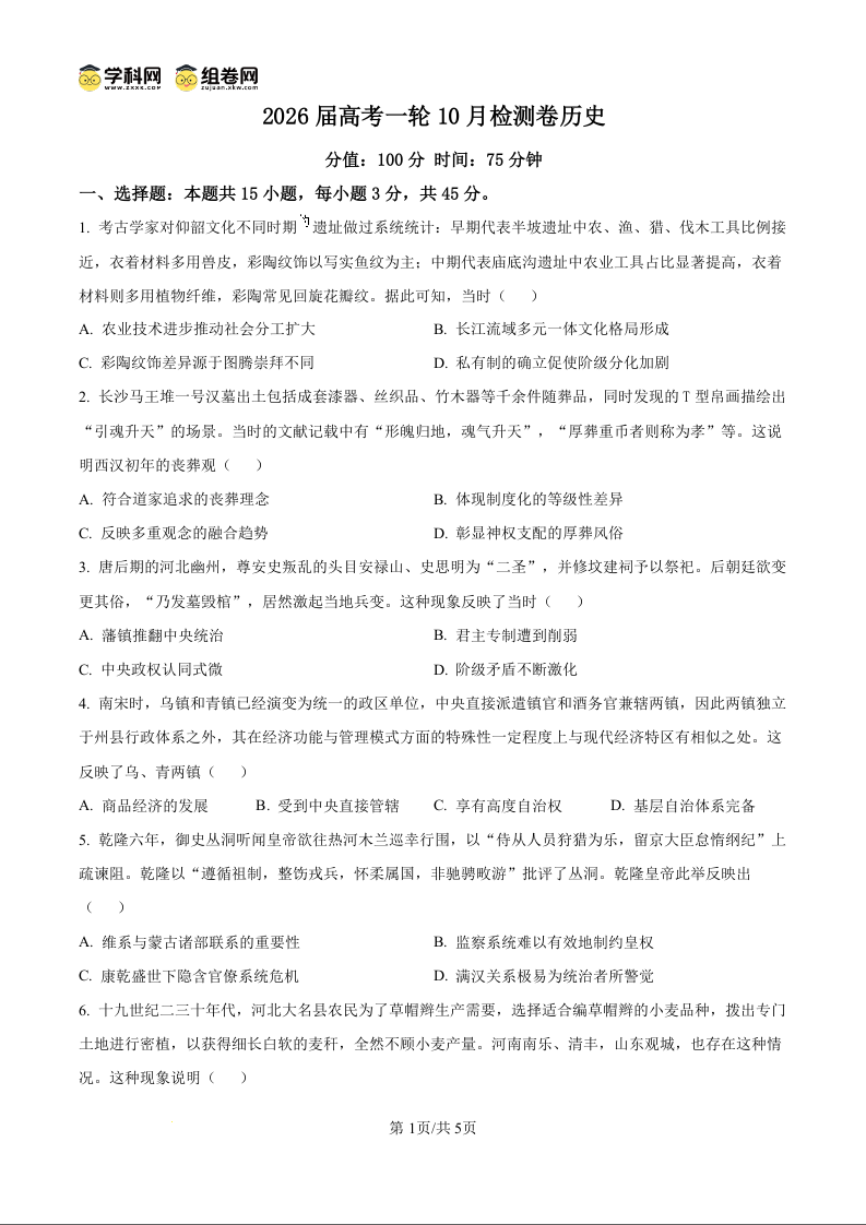 安徽省阜阳市阜南第二中学2026届高三上学期11月期中考试 历史.docx