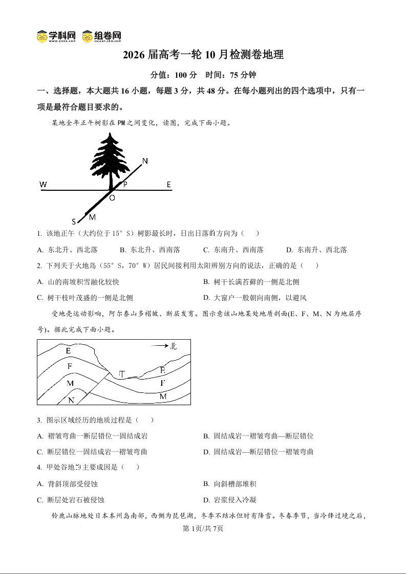 安徽省阜阳市阜南第二中学2026届高三上学期11月期中考试 地理.docx