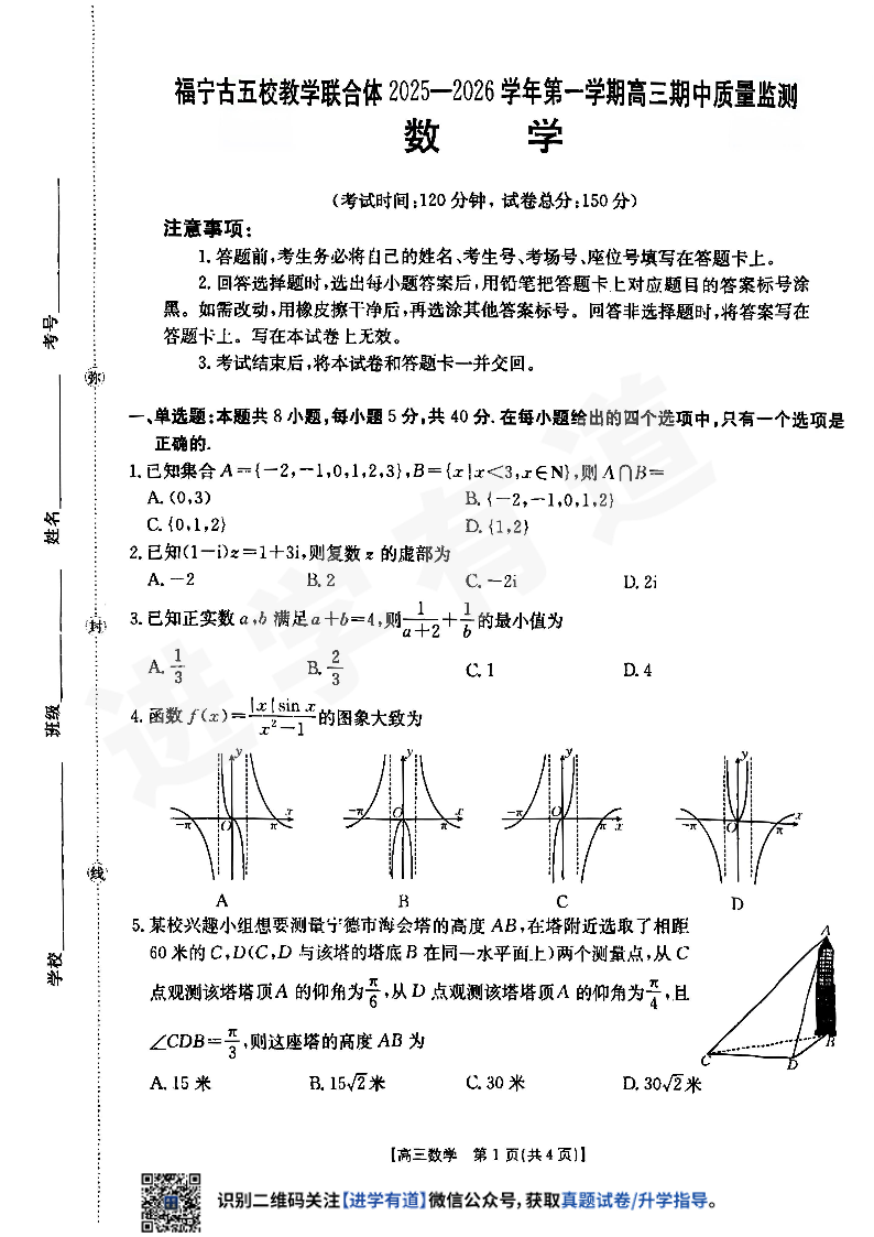 福宁古五校教学联合体2025-2026学年第一学期高三期中质量监测 数学.pdf