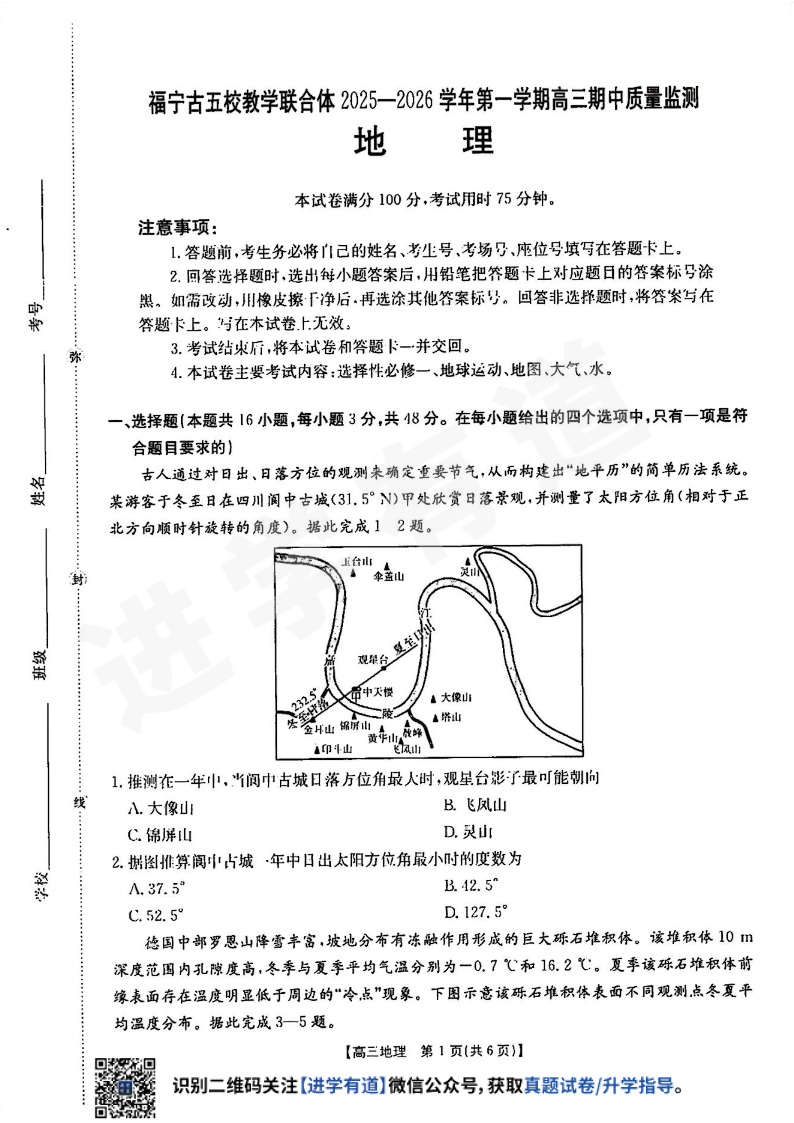 福宁古五校教学联合体2025-2026学年第一学期高三期中质量监测 地理.pdf