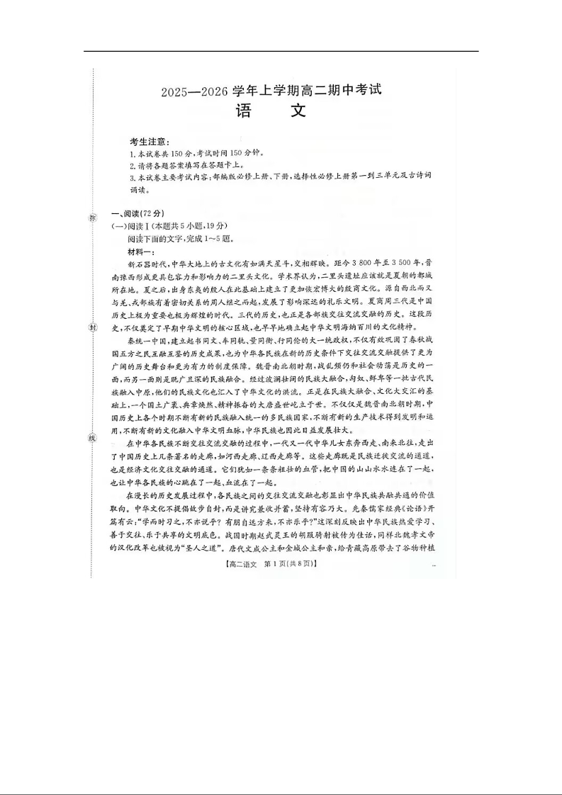 广西壮族自治区来宾市2025-2026学年高二上学期11月期中考试 语文.docx