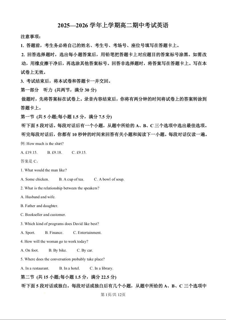 广西壮族自治区来宾市2025-2026学年高二上学期11月期中考试 英语.docx