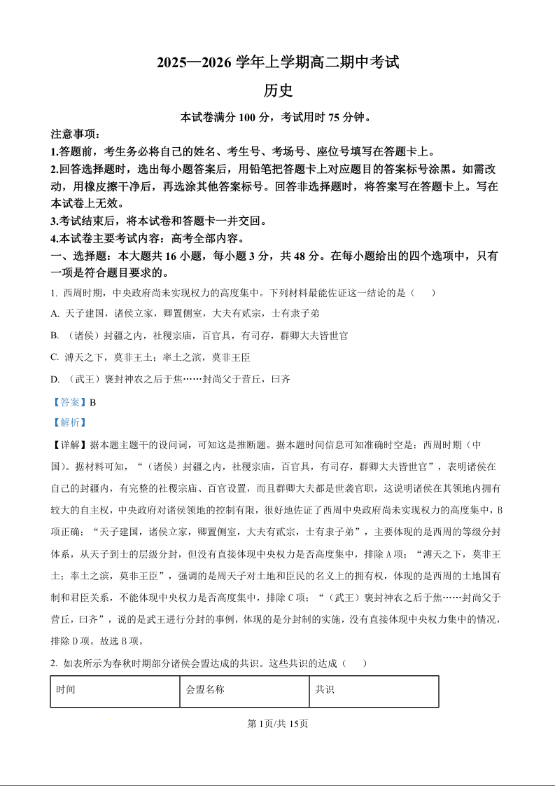广西壮族自治区来宾市2025-2026学年高二上学期11月期中考试 历史答案.docx