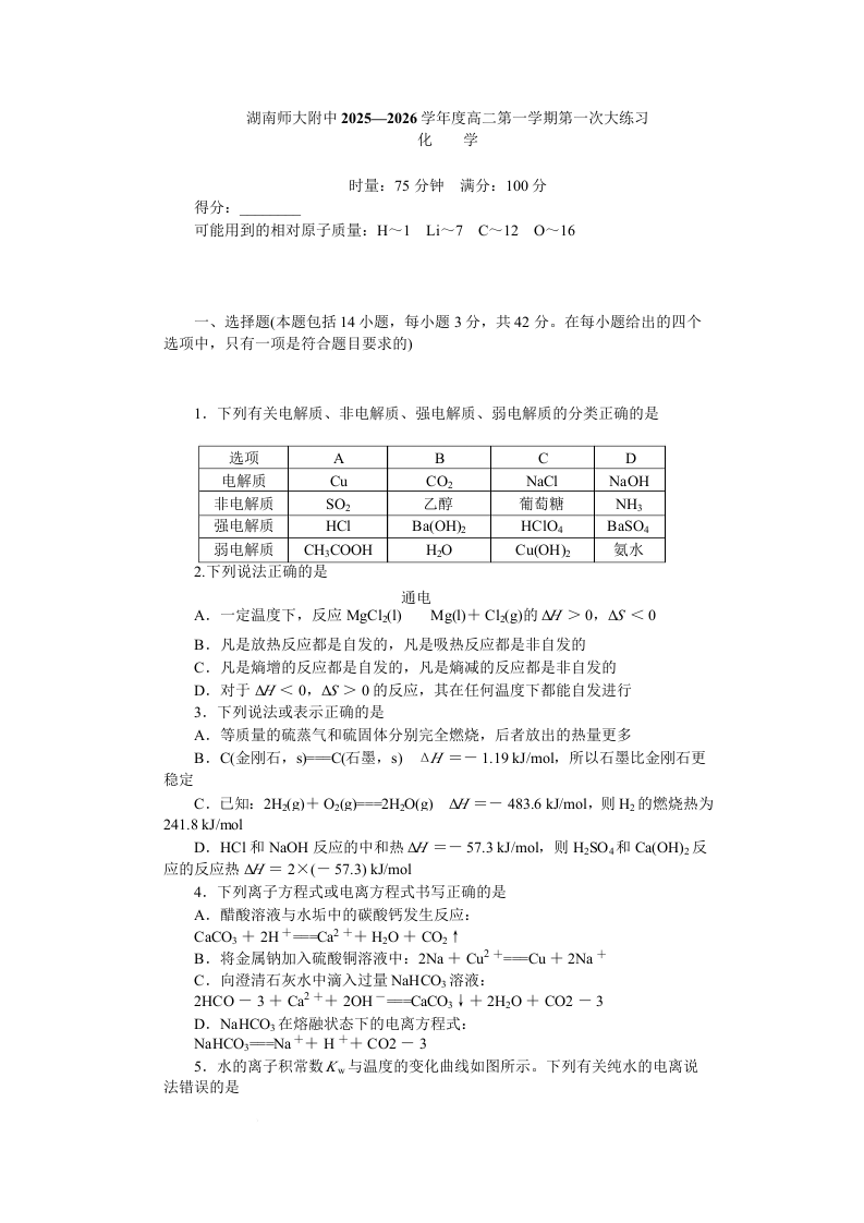 2025~2026学年湖南师大附中高二年级第1次月考 化学.docx