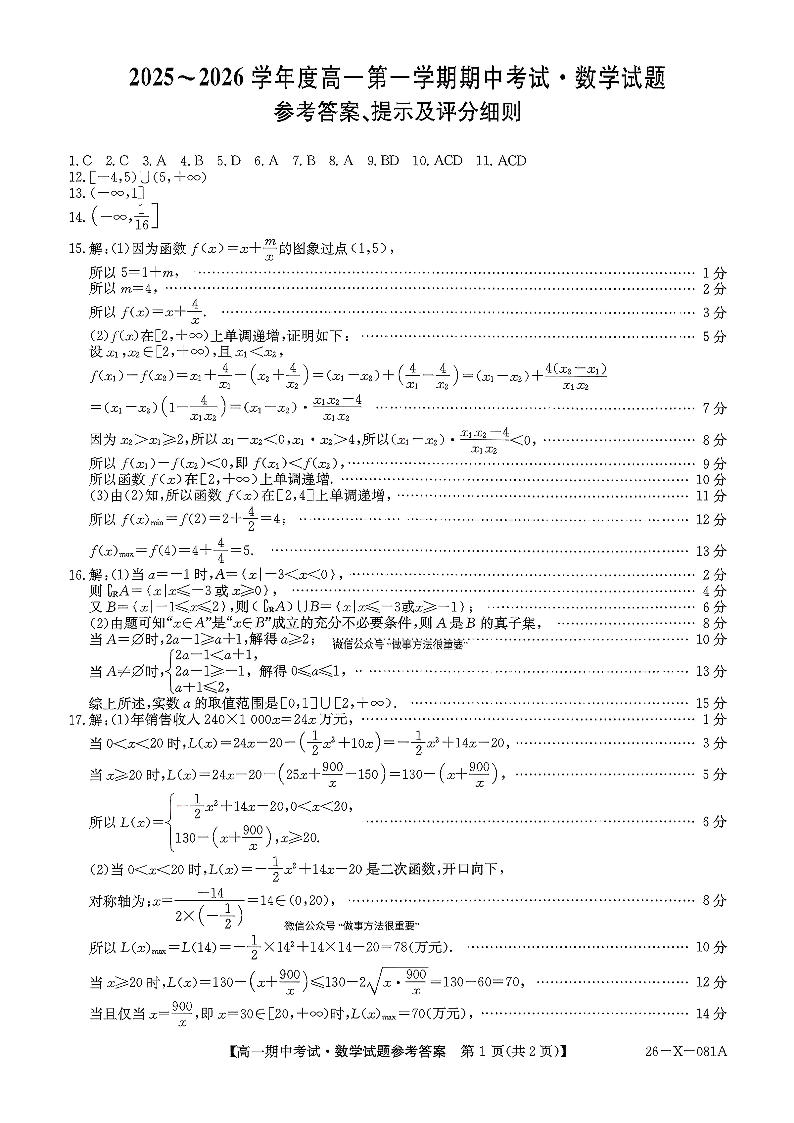 广东深圳市盟校2025-2026学年高一上学期11月期中考试 数学答案.pdf
