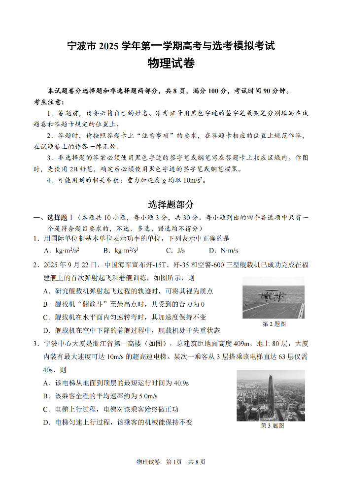 宁波市2025学年第一学期高考模拟考试 物理.pdf