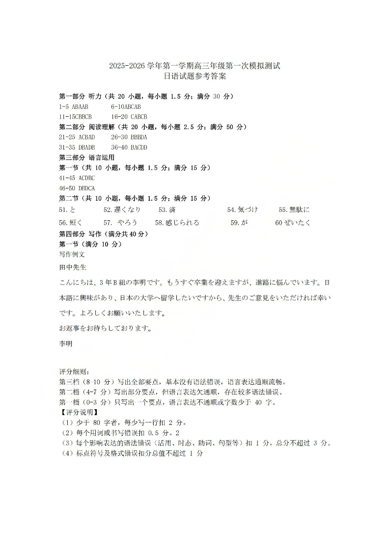 宁波市2025学年第一学期高考模拟考试 日语答案.pdf