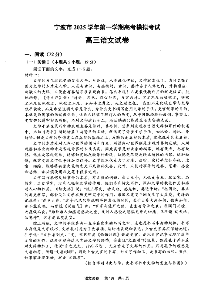 宁波市2025学年第一学期高考模拟考试 语文.pdf