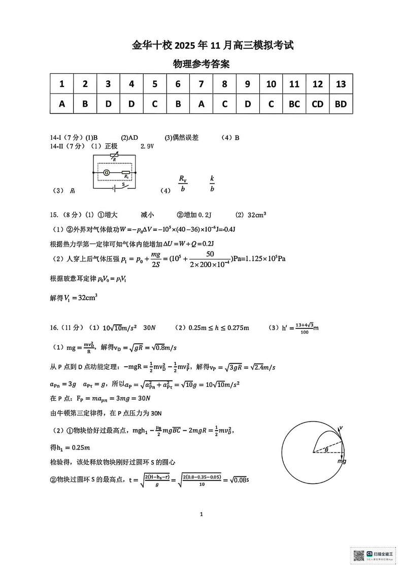金华十校2025年11月高三模拟考试 物理答案.pdf