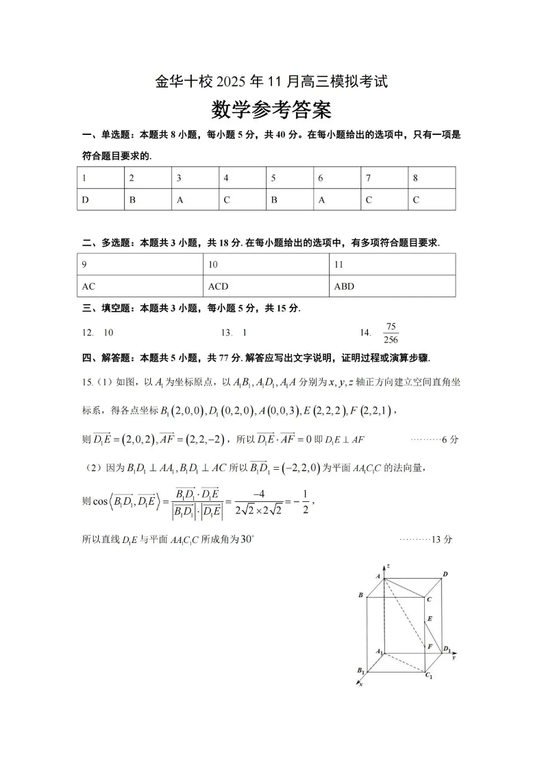 金华十校2025年11月高三模拟考试 数学答案.pdf