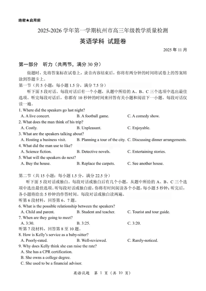 2025学年第一学期杭州市高三年级教学质量检测 英语.pdf