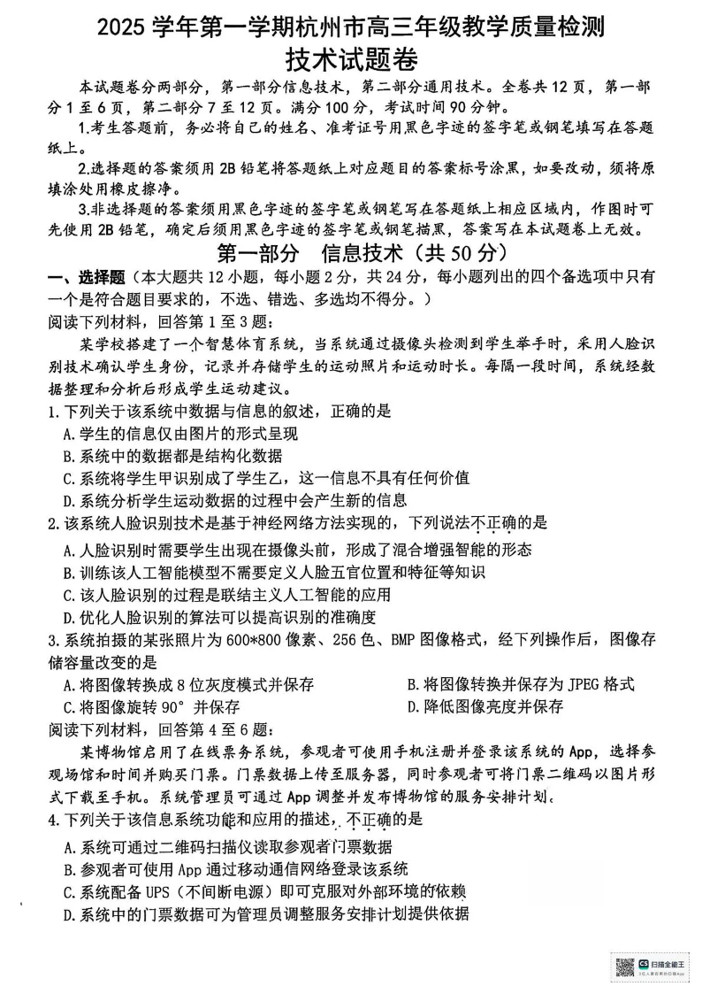 2025学年第一学期杭州市高三年级教学质量检测 技术.pdf