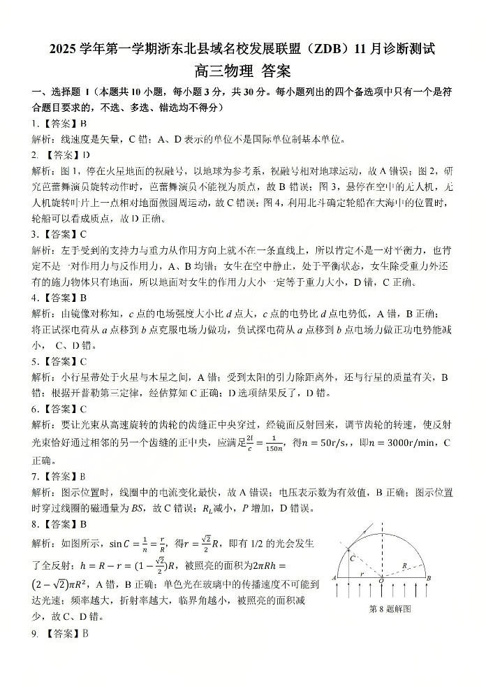 2025学年第一学期浙东北县域名校发展联盟(ZDB)11月诊断测试 物理答案.pdf