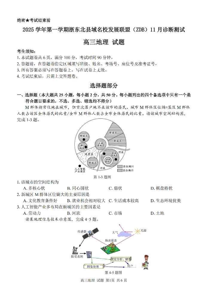 2025学年第一学期浙东北县域名校发展联盟(ZDB)11月诊断测试 地理.pdf