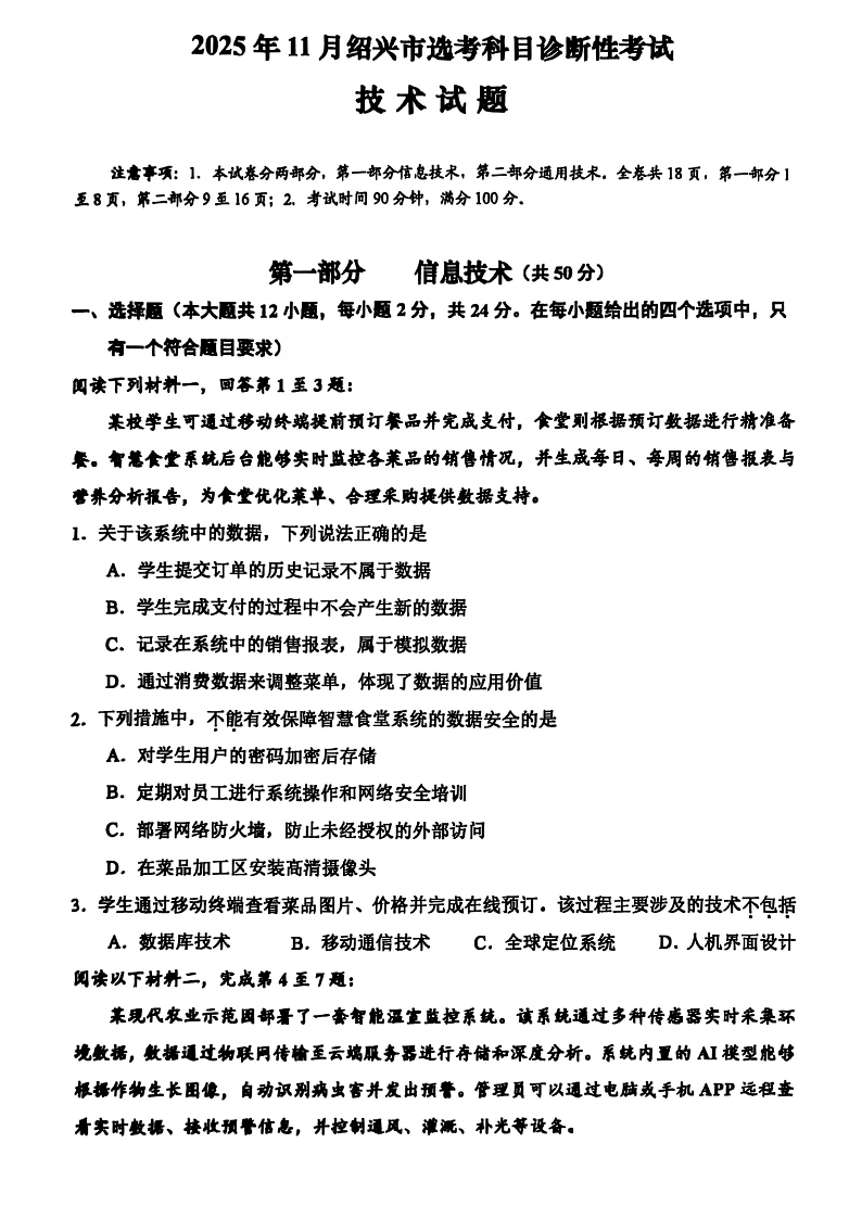 2025年11月绍兴市高考科目诊断性考试 技术.pdf