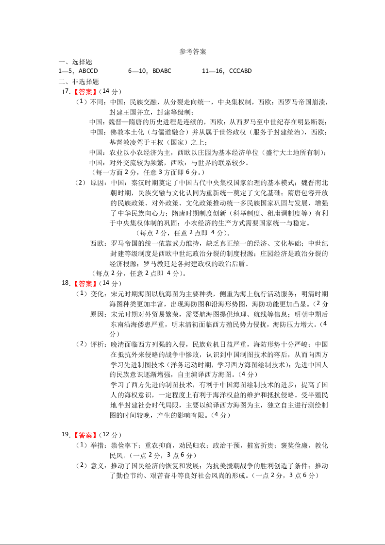 云南省玉溪第一中学2025-2026学年高三上学期期中考试 历史答案.docx