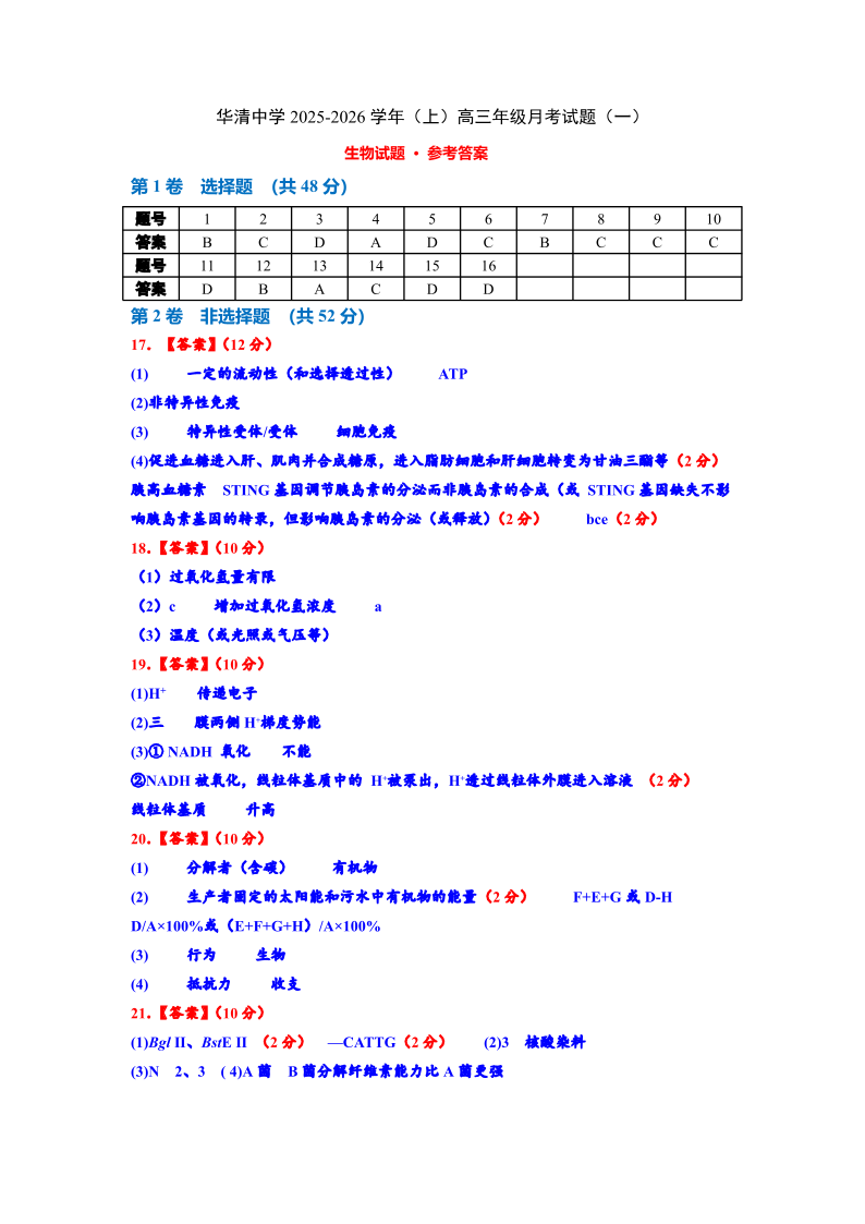 陕西省西安市华清中学2026届高三上学期11月期中考试 生物答案.pdf