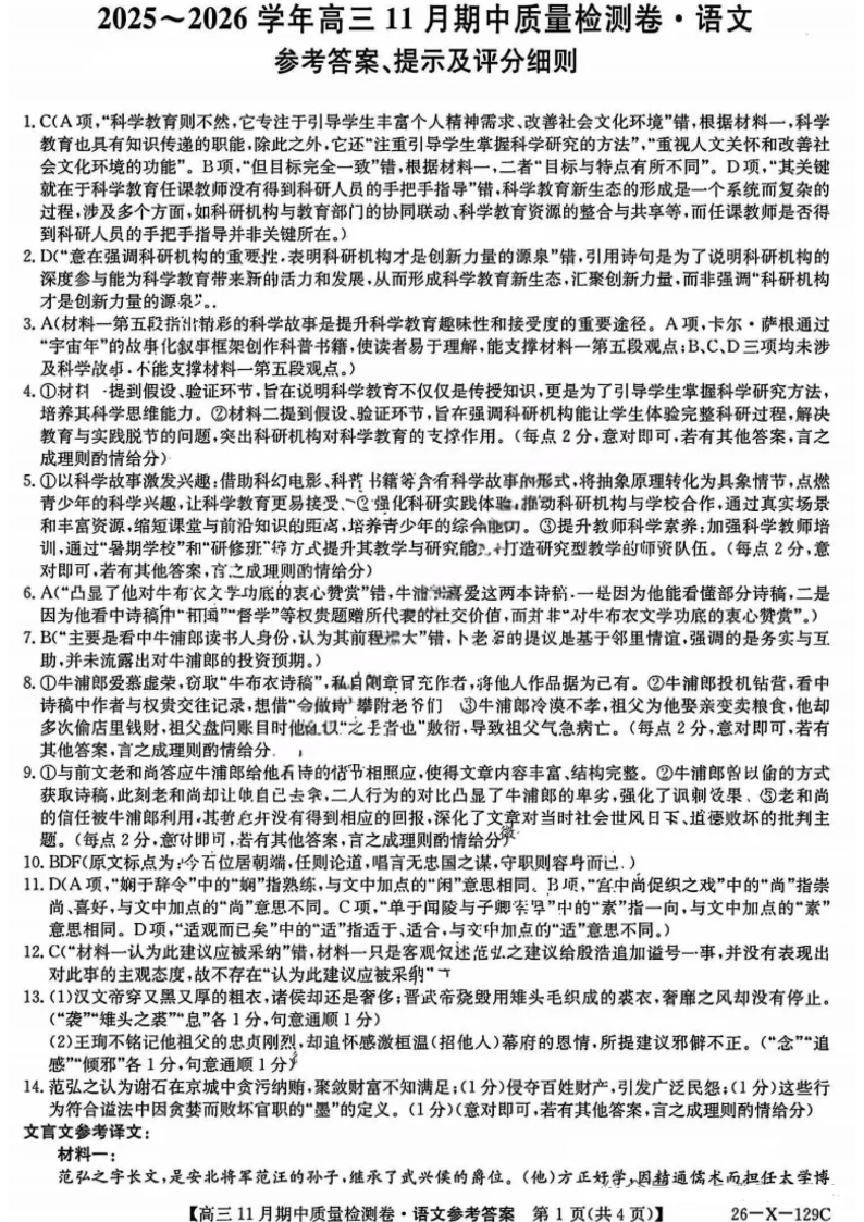 山西省卓越联盟2025-2026学年高三11月期中质量检测卷 语文答案.pdf