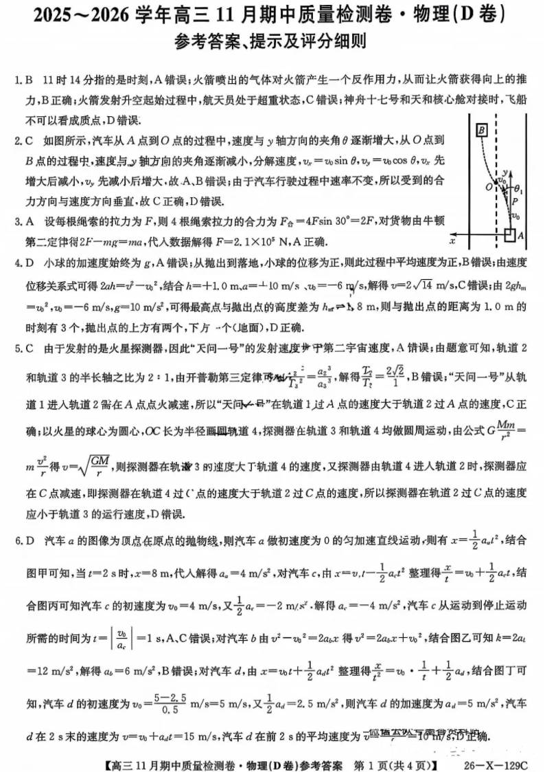 山西省卓越联盟2025-2026学年高三11月期中质量检测卷 物理答案.pdf